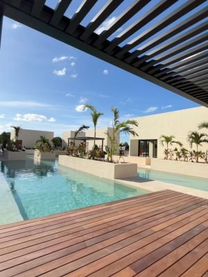 Alberca ''El Cenote''. Un cuerpo de agua con un canal de nado de 25 mts, rodeado de vegetación que al mismo tiempo se complementa con un espacio de camastros para sentir y disfrutar del sol.